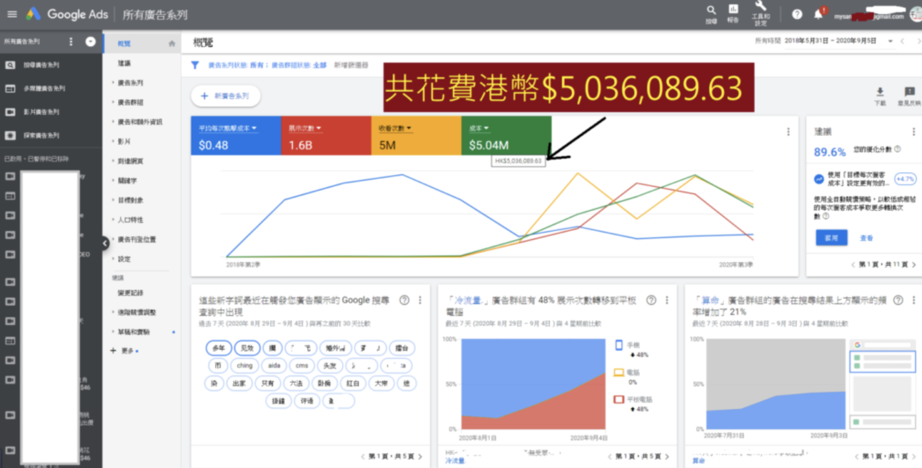 時至今日,我在Google、FaceBook、Yahoo,以至各大廣告平台,大約已花上了過千萬廣告費;而過千萬,在香港大約已能買下兩個兩房單位了~