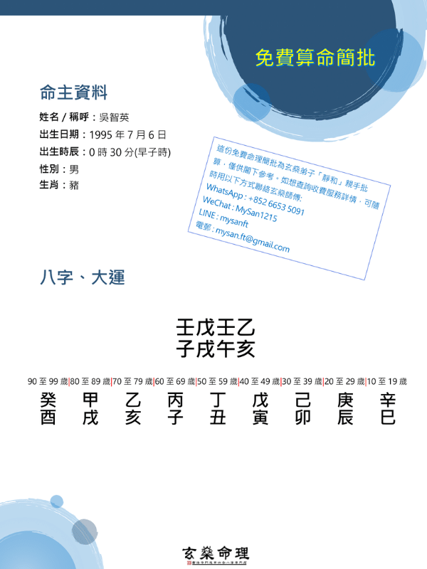 購買成功後可Whatsapp 98843215 與我助手聯絡﹐玄燊師傅會透過電郵將PDF版命書發給你。此服務為電子版命書, 客戶只需留下電郵便可收到命書結果.