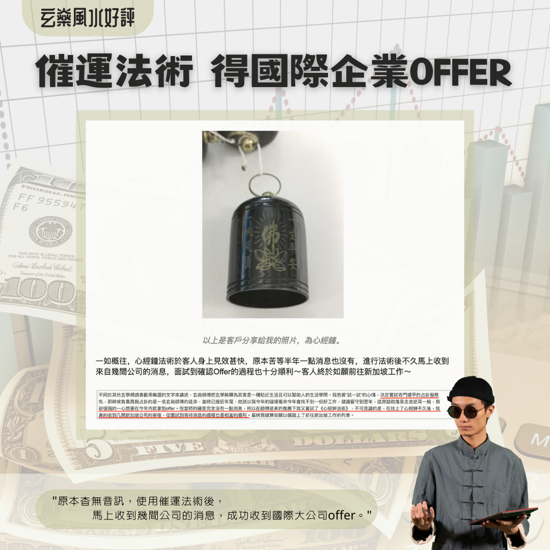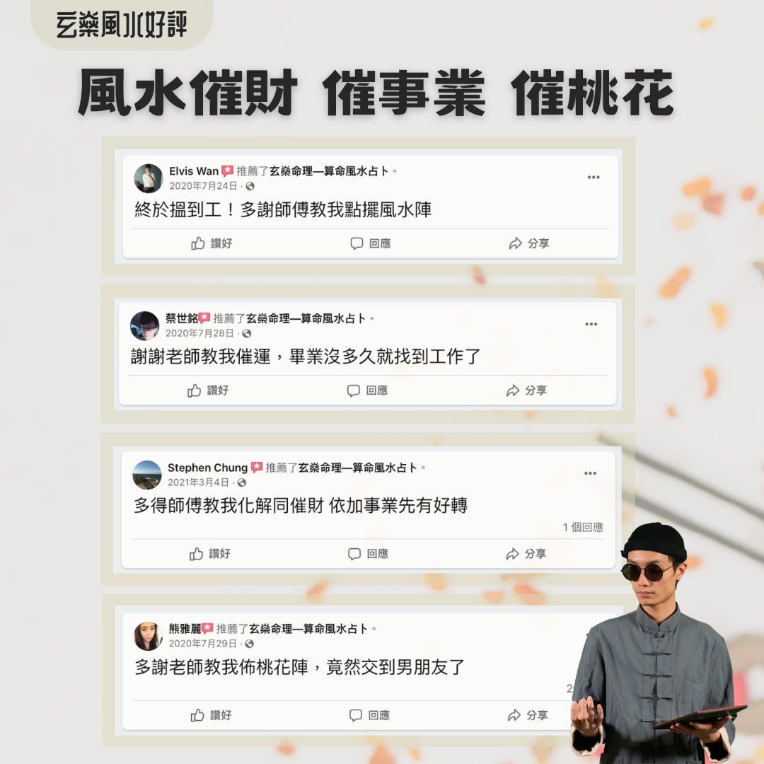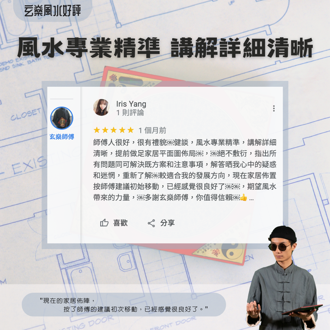 “以前一直認為新墳不佳,原來是屋企風水差,一直轉不到運. 直到睇陰宅師傅推薦玄燊師傅給我, 讓我看看陽宅風水. 現在事業財運近3年已有明顯好轉."